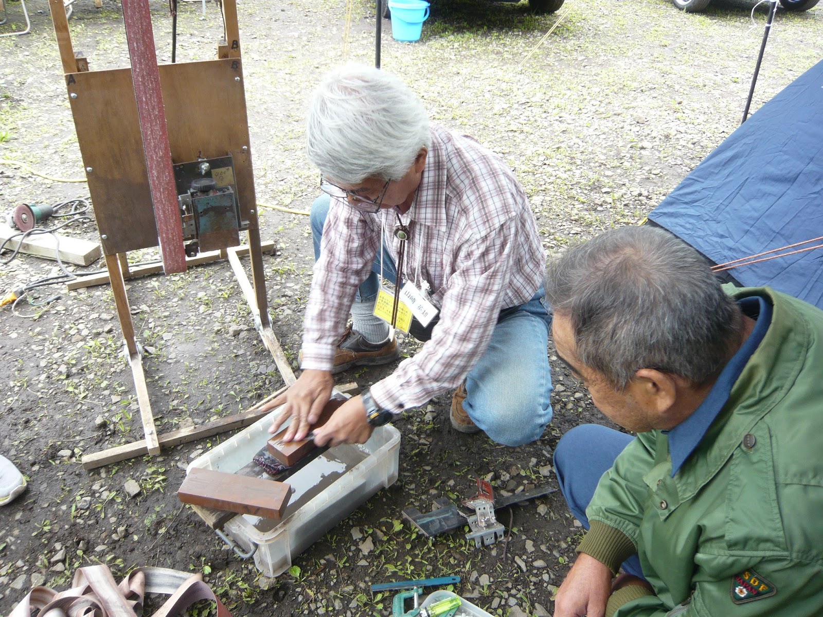 ナイフメーカーの山崎さんが何か研いでいますな。